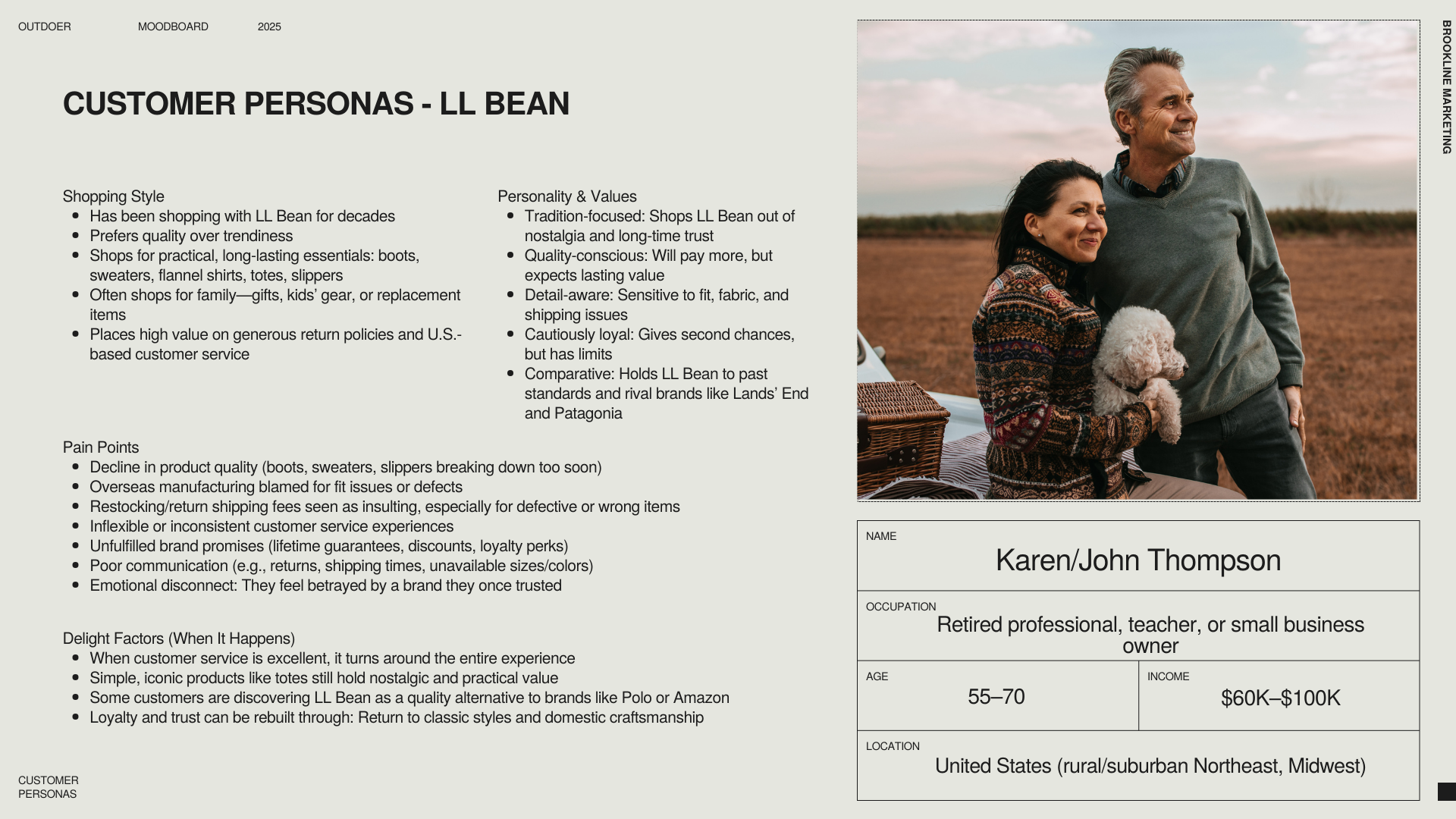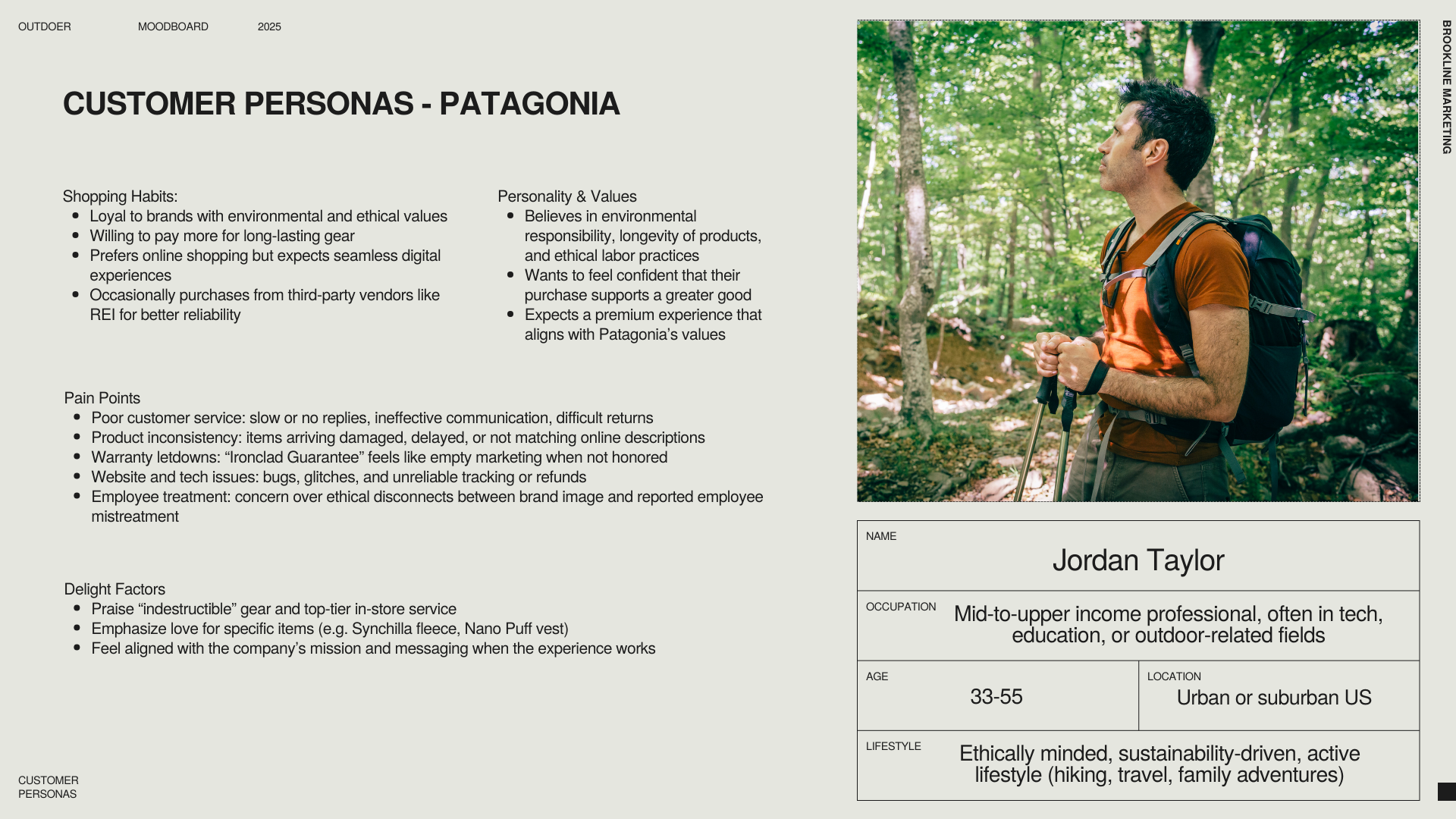 Using TrustPilot, I gathered 300+ customer reviews across Outdoer's three key competitors: LL Bean, Land's End, and Patagonia, and synthesized them into detailed customer personas for each brand.