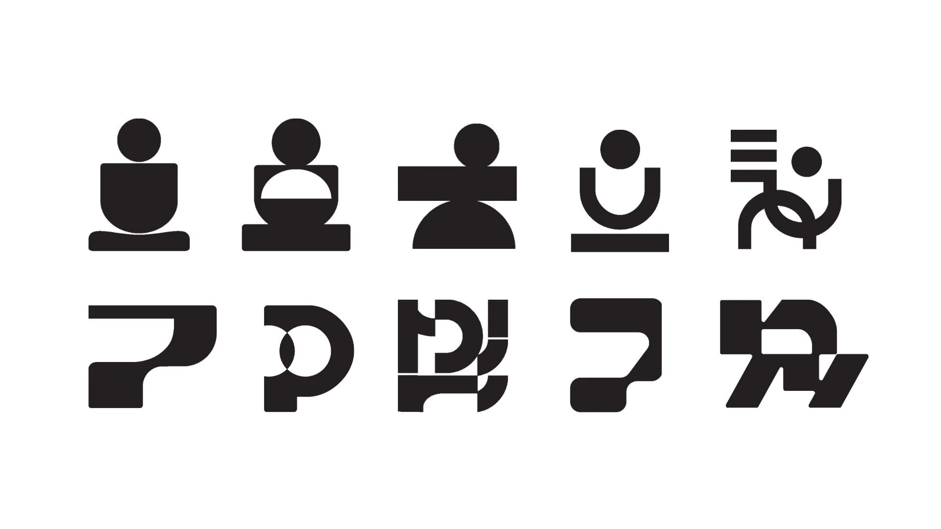 In Stage 2, a dedicated icon exploration produced 22 distinct mark concepts. Categories explored included abstract P-forms, letterform integrations, spiral and flow motifs, human figure abstractions, and reformer-inspired geometric shapes. The goal: a standalone mark that could function independently across apparel, digital, and signage contexts.